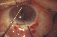 Techniques we're now using to enlarge the pupil, including bimanual stretching, pictured here, have made concurrent cataract and glaucoma surgery safer and easier. |