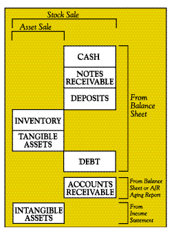 Context of the sale: In some transactions, various components of value may be excluded. For example, most sales of practices to third parties are limited to tangible assets, inventory, and intangibles. In comparison, stock sales (including buy/sell arrangements) usually include all assets and liabilities of the practice. |