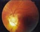 Left: Optic nerve pit, OS. Right: Pseudodoubling of the patient's optic nerve, OD. |