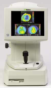 The compact OPD-Scan combines a refractive power analyzer, wavefront analyzer, corneal topographer and autorefractor/keratometer into one unit. The unit produces all measurements and maps in diopters, covering -20 to +22 D sphere and -16 to +16 D cylinder.
