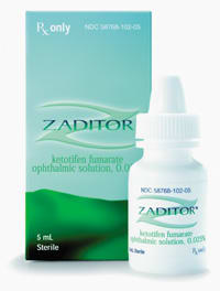 Ketotifen fumarate ophthalmic solution 0.025% (Zaditor) from Novartis provides fast relief of itchy, watery eyes in patients suffering from allergies. When used twice daily, ketotifen provides 24-hour relief. It has a dual mechanism of action, acting as an antihistamine to prevent itching associated with allergic conjunctivitis and as a mast cell stabilizer to prevent further release of histamine.