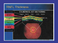 - useful in deciding whether to implement more or less aggressive glaucoma therapy based on nerve layer thickness