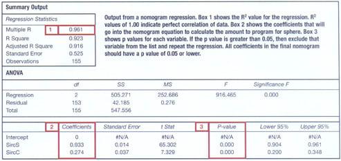 Nomograms can be quite complex, but the question they answer is straightforward: What amount should be programmed into the laser to achieve the desired correction? Surgeons can create basic nomograms using spreadsheets such as Microsoft Excel. The first step in creating a nomogram is to create a list of eyes that were operated on under similar conditions and put it in a spreadsheet with the programmed amount in the first column and the achieved amounts for sphere and cylinder in the second and third columns. Additional variables can be added to evaluate other factors such as temperature and humidity.