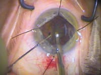 "This maneuver keeps the chamber from abruptly shallowing because the Healon5 effectively masks positive pressure," Dr. Osher says. "The iris prolapse is retarded by the deeper chamber into which the pupil rapidly constricts from the Miochol."