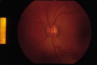 ► Her optic nerves and stereoscopic disc photographs appeared normal, with cupping OD 0.4 x 0.4 and OS 0.3 x 0.3 (see images on next page).