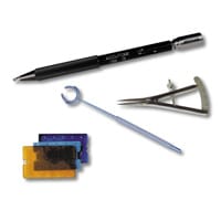 This kit consists of a Mendez-style fixation ring with 10-degree markings, a blunt-tip caliper, and a preset 600-micron double-cutting, single footplate natural diamond blade. All three of these instruments come packaged in a protective autoclavable plastic tray and are reusable.