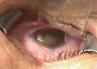 with the conjunctiva, lid margins, surgical drape and lashes. |
