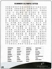 Great! Now, how could we possibly get enough words to make 84 puzzles? Happily, we have an office staff that enjoys having something to distract them from actually working, so the challenge went out: make up a list of words pertaining to some theme, any theme. We ended up with dozens of ideas, ranging from types of donuts to names of Hollywood hunks. From these suggestions, the 84 word search puzzles were constructed.