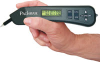 The PachPen's ergonomic design makes taking measurements quick and easy. The unit has the ability to take nine readings and average them. In addition, the IOP correction calculator converts entered IOP measurements from a tonometer in seconds. Accutome says its Digital Signal Analysis actually examines waveforms and eliminates marginally aligned measurements.