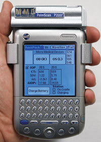 The PalmScan P2000 is a portable, wireless, pocket-size, battery-operated ultrasonic biometer able to perform numerous functions, including IOP adjustment, peripheral corneal measurement, intraoperative flap thickness and corneal bed measurement, as well as measure corneal scar size and depth.