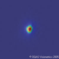 During the first pass, OQAS shines a low-power beam of diode laser light (wavelength = 780 nm) into the eye, producing an image of a punctual circular spot on the retina. During the second pass, the reflection of this spot on the retina is measured by a highly sensitive low- light camera. OQAS measures the ability of the eyes' optical system to project a beam of light onto the retina. Because OQAS measures all light reflected back off the retina, the measurement contains the effects of light scatter and all HOA (up to the nth order). Studies conducted by Drs. Artal and Pujol show that this is the area where Hartmann-Shack or ray-tracing aberrometers fall short. They are unable to measure light scatter or HOA (nth order aberrations to scatter).