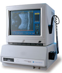 The I3 System-ABD is a high-resolution digital A/B-scan unit and may be configured with up to four modes: (1) 10 MHz globe and orbit B-scan, (2) 20 MHz Wide-Field anterior segment B-scan, (3) axial length biometry A-scan with multiple IOL calculation formulae, including: Holladay-I, SRK-T, Haigis and Hoffer-Q and (4) standardized diagnostic A-scan. All units include a movie mode capable of recording 10 seconds of imaging at 25 frames per second.