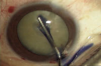 Second, the method provides a completely clear view of the capsule. The presence of a viscoadaptive OVD that blockades the wound allows for excellent pressurization of the anterior chamber and a capsulorrhexis that is easy to perform and is not likely to tear out to the periphery.