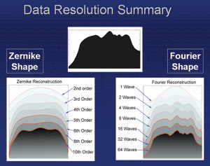 All three platforms that have the components necessary for custom LASIK use the Hartmann-Shack model for the essential "capture" of the wavefront image. The information is then analyzed by Zernike (Alcon and Bausch & Lomb systems) or Fourier expression (VISX system) to bring out the detail and characteristics of the wavefront measurement. These approaches represent legitimate differences in how the wavefront is analyzed, affecting the shape that's generated and the fidelity of reproduction. The Fourier, or sine-wave-derived, transformation of a complex shape is more detailed, providing the equivalent of 64 orders of Zernike polynomials. The resulting shape is more complex and more faithful to the original (see "Data Resolution Summary"). In contrast, you can reproduce a simple shape accurately with a simple algorithm, but Fourier shines when you need a therapeutic application of a complex shape.