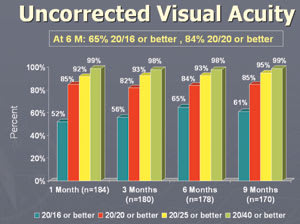 84% of eyes achieved uncorrected visual acuity (UCVA) of 20/20 or better and 65%