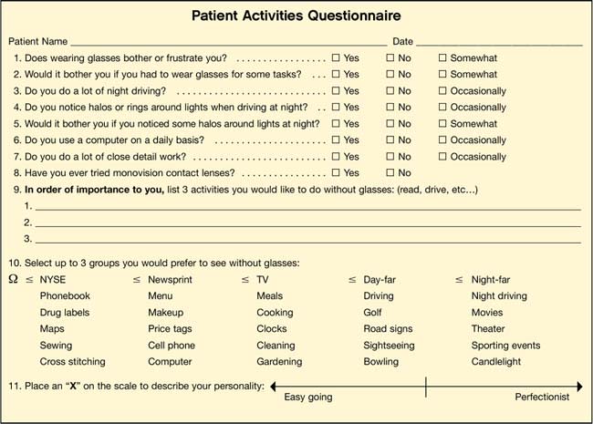 Figure 2. The Patient Activities Questionnaire is highly useful in helping to select the appropriate lens for each patient.