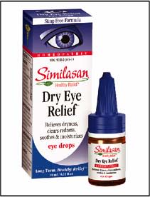 Similasan Dry Eye Relief eye drops contain homeopathic ingredients that stimulate the bodys ability to soothe and moisturize without harsh chemicals or vasoconstrictors. Similasan eye drops are safe for all ages and the active ingredients cause no known side effects or drug interactions. The company offers free samples to interested eye care professionals.