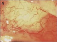 Multiple passes of the needle are typically necessary to revive the bleb. Ideally, all of the needling is performed from a single site, but it is sometimes necessary to approach the bleb from both sides (temporally and nasally). If the maneuver is successful, the bleb will change its appearance during the procedure. Specifically, flat blebs will grow more elevated, and encapsulated blebs will become more diffuse. The bleb's changing appearance indicates the restoration of aqueous flow. (Figures 2-5).