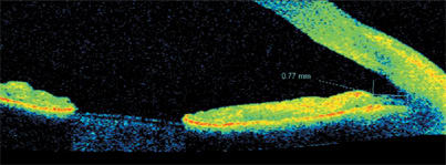 The system offers an objective view following peripheral iridotomy or iridectomy. Compared with gonioscopy, the Visante OCT is nontechnical for the practitioner and comfortable for the patient. It produces minimal light artifact and provides automatic documentation. In addition, it doesn't produce pressure artifacts. A significant problem with gonioscopy is the pressure it puts on the cornea. That pressure can open or close the angle. The Visante OCT, I believe, is revolutionizing how we deal with this.