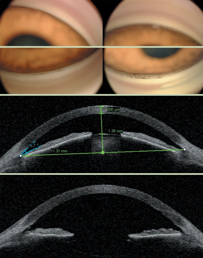 Imaging illustrates a very narrow angle and the need for a lensectomy. The lensectomy accomplished the goal of a much more open anatomy.