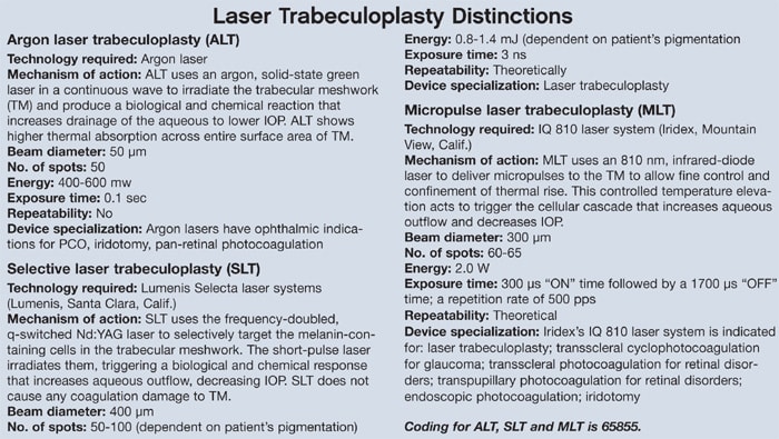7. Lai J, Bournias, TE. Repeatability of selective laser trabeculoplasty (SLT). Presented at: Association for Research in Vision and Ophthalmology; May 2005; Fort Lauderdale, Fla.