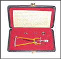■ The Schiotz Tonometer features accurate weight and reliable performance, says Khosla Medical, Inc. It comes complete with an instructional pamphlet and calibration scale and is housed in a case that consists of a base with slots to store 7.5-, 10- and 15-gram weights.