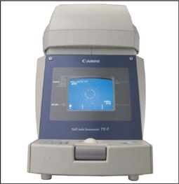 ■ Canon uses innovative technology in its TX-F full-auto tonometer. Once a patient's eye is seen on the monitor, the start button can be pressed and the exam is over in seconds.
