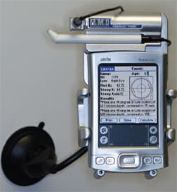 ■ The PalmScan P2000 is a true surgical pachymeter with patient database capabilities that allow quick access to patient pachymetry results. It has a 17-location corneal-mapping capability that becomes highly useful for capturing corneal thickness at non-central corneal locations. The P2000 device offers the option of a 50 MHz pachymeter probe that makes corneal measurements at the limbus easy to perform. This option is highly recommended to customers who are interested in the exclusive LRI-Nomogram features of the PalmScan.