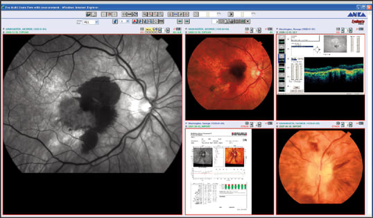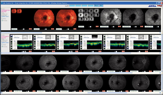 Figure 3. In the exam room, the physician can use the EyeRoute to easily view a selected sampling of a patient's fluorescein angiography and OCT scans over time.