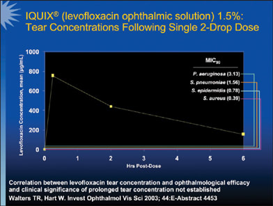 Such levels of penetration and concentration should give us great comfort in using IQUIX over existing fluoroquinolones for either corneal infection or for ocular surgical prophylaxis.