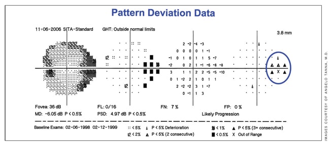 Dr. Tanna agrees that it is important to take the entire clinical picture into account. Because there is no gold standard, he says, the true sensitivity and specificity of GPA to detect progression are unknown. There clearly are times when a patient who seems stable in every other regard appears to have progressed using GPA criteria. "Additionally, in some circumstances, glaucoma progression can be diffuse, and if that is the case, it is possible for the total deviation or the mean deviation to deteriorate without deterioration in the pattern deviation," he says. "That's one situation in which true glaucomatous progression can be entirely missed by the GPA software since it evaluates pattern deviation data only."