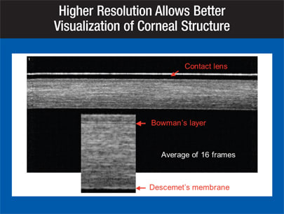 Figure 1. The RTVue-100 scan can differentiate a contact lens, Bowman's layer and Descemet's membrane.