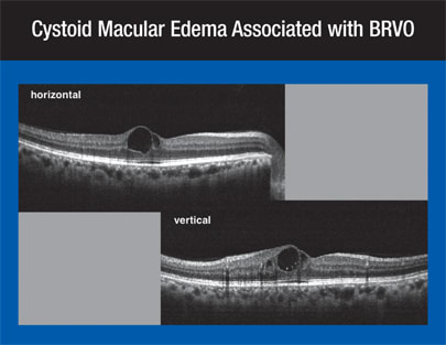 Figure 6 shows cystoid macular edema (CME) associated with branch retinal vein occlusion. Layers in the outer retina appear to be more or less within the normal range. The appearance of these structures tells us that this patient will make a good visual recovery after appropriate treatment.