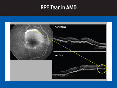 Figure 3. This image shows a retinal pigment epithelium (RPE) tear in a patient with age-related macular degeneration.