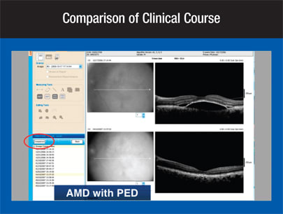 Figure 13. The RTVue-100 enables us to effectively track a patient with AMD and pigment epithelium detachment (PED).