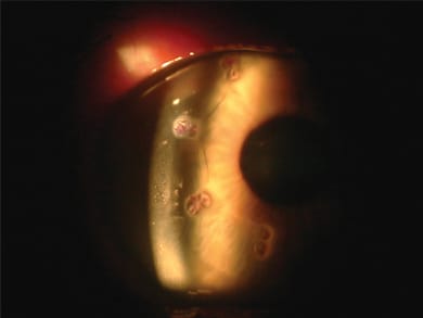 Figure 2. CK Retroillumination: For on-label CK, patients receive 8 spots at a 7-mm optical zone.