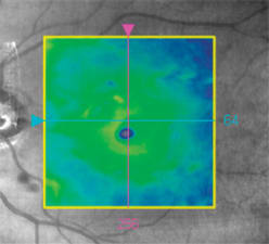 Initially, I decided to continue treating the patient with topical NSAIDs and corticosteroids and begin a trial with intravitreal bevacizumab (Avastin, Genentech), recognizing that this was an off-label anti-VEGF agent, and that the combined diabetic and postop CME may not fully respond to this treatment course. When the patient returned 6 weeks postinjection, I took a new set of images with Cirrus HD-OCT and compared them to those taken at baseline. The patient's vision remained unchanged, although the CME had thinned mildly to 325 microns. The patient either partially responded to the pharmaceutical treatment or time alone allowed for some of the improvement. Cirrus HD-OCT gave me the amount of data and high-resolution images I needed to decide the best course of further treatment. I weighed my options: observation, continued use of topical NSAIDs and/or corticosteroids, further anti-VEGF treatment, laser photocoagulation, intravitreal triamcinolone (Kenalog), or pars plana vitrectomy surgery.