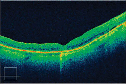 Figure 1. The Stratus OCT shows a schisis of the posterior hyaloid in a patient with vitreomacular traction syndrome.