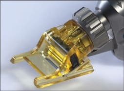 ■ The Carriazo-Pendular microkeratome provides safe and predictable results, says the company. The cutting head and blade are designed in a convex form similar to the cornea itself. The unique design of the Carriazo-Pendular, combined with the optimal settings for cutting speed and blade oscillation, provides a homogeneous flap profile, highly predictable flap thickness with an extremely low standard of deviation down to 10 μm and smooth cutting edges. An additional vacuum chamber located in the suction ring increases cutting safety, says Schwind. An innovative blade box for almost touchless mounting of the blade increases cutting safety once more. The hinge position can be freely selected (360°) and individual components are interchangeable for optimal OR procedures.
