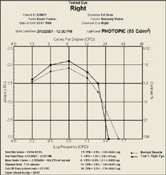 Contrast Sensitivity System ![]() Figure 2. The printed report for the HACSS includes a graphic comparison to normative data. |
