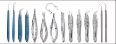Crestpoint says the instruments in this set provide exact cutting and secure grasping in both the horizontal and vertical planes. The forceps and scissors are color-coded (blue and gold) for ease in identification.