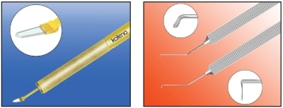 Katena now offers the MICS Trapezoidal Diamond Knife (left) and the double-ended Chang-Siebel Combination Chopper.