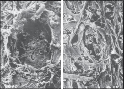 Figure 1. ALT histology (left) shows permanent trabecular mesh-work damage while SLT histology shows no destruction of the trabecular meshwork.