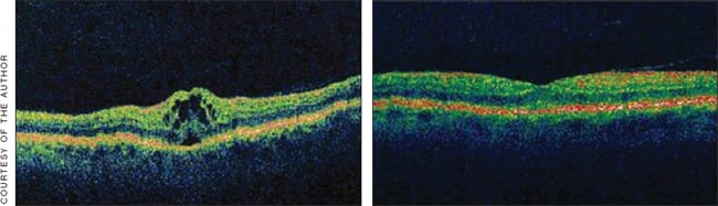 “With OCT, a device that can be operated by any competent ophthalmic technician can quickly demonstrate subtle variations in macular anatomy that were formerly revealed only by skilled clinical examination,” he continues. “However, keep in mind that structural abnormalities, such as macular edema, can be related to functional abnormalities that are not apparent on OCT.