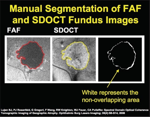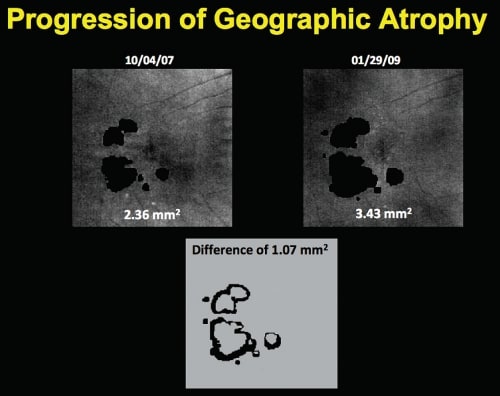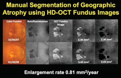 A new algorithm is under development for the Cirrus HD-OCT that will allow automatic, rather than manual, quantification of GA. This will be an exciting advance for reading centers, and it will also allow those of us in clinical practice to follow our patients much more closely and better explain why they are losing vision.