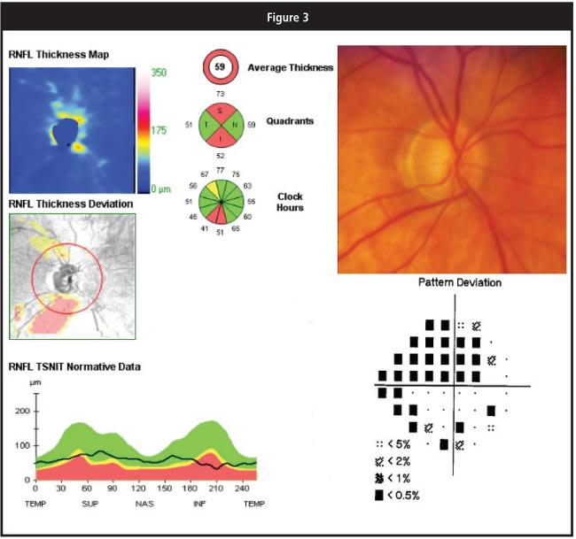 Figures 1-3. In these 3 cases, Cirrus HD-OCT optic disc and retinal nerve fiber layer analyses reveal defects that would be difficult to detect by other means.