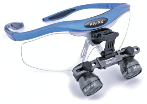 ■ Keeler's new Mini Loupes provide high-resolution 2.5x magnification and weigh just 34 grams. Mini Loupes utilize the same top quality, anti-reflective, coated Schott glass as Keeler's standard Galilean system. The Loupes provide good visualization at a working distance of 34 to 50 cm while minimizing edge distortion. The Mini Loupes feature a "flip up" hinge system that allows the user viewing and posture angle flexibility.