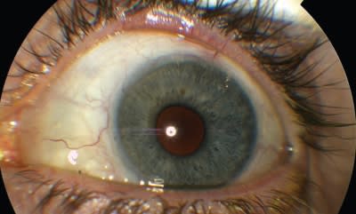 Figure 1. A 28-year-old African-American female high-myope with diffuse but thick bleb at postop month three. PHOTO'S COURTESY OF THE AUTHOR