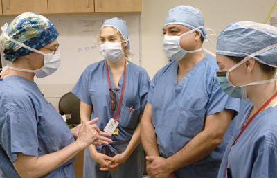 Dr. Butrus finds his role in academia stimulating. Here, (second from right) he exchanges ideas with his residents.