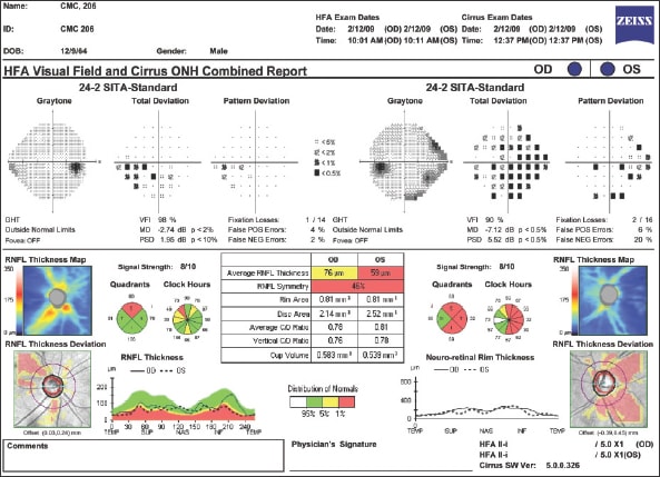 The HFA-Cirrus Combined Report, available exclusively with the FORUM data management solution, is the industry's first integration of OCT and visual field diagnostic analysis. (See “HFA-Cirrus Combined Report.”) By combining data from the gold standard Humphrey Field Analyzer (HFA) and market-leading Cirrus HD-OCT, this FORUM HFA-Cirrus Combined Report provides structure and function status at-a-glance to help practitioners save time making clinical assessments. This automatically generated one-page digital snapshot delivers key patient exam information at the point of care for both right and left eyes, including analyses of visual function, RNFL and the optic nerve.